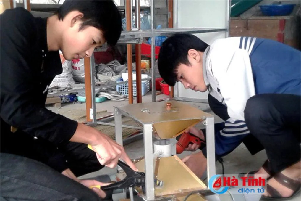 Bằng niềm đam mê, 2 cậu học trò Trần Văn Phong và Bùi Long Nhật (học sinh lớp 12A5, Trường THPT Cẩm Xuyên) đã mày mò chế tạo thành công máy phân phối thức ăn cho thủy sản. Sản phẩm này đã vượt qua hàng trăm "đối thủ" và đạt giải nhì Cuộc thi Sáng tạo kỹ thuật thanh thiếu niên, nhi đồng toàn tỉnh lần thứ 8.