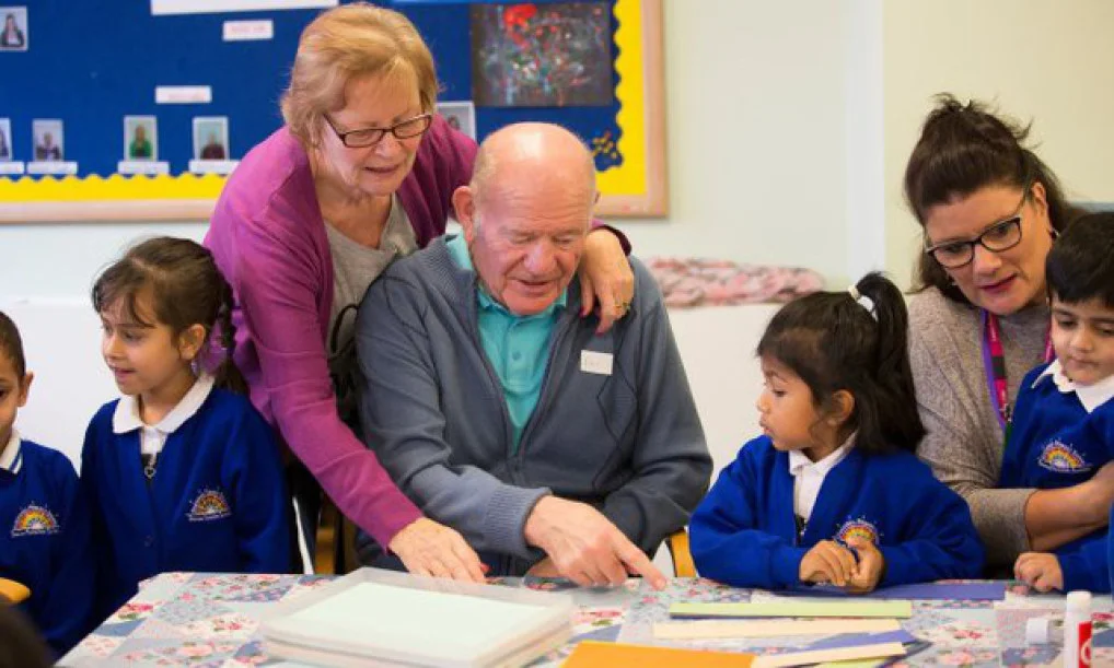 Một trường tiểu học ở Anh đang thí điểm dự án có tên gọi Bringing Together, Learning Together, Growing Together (Mang mọi người lại gần nhau, cùng học, cùng phát triển) nhằm đưa những người già cô đơn, trầm cảm và mắc chứng mất trí nhớ sớm vào lớp học, cùng học với những trẻ em 4-5 tuổi.