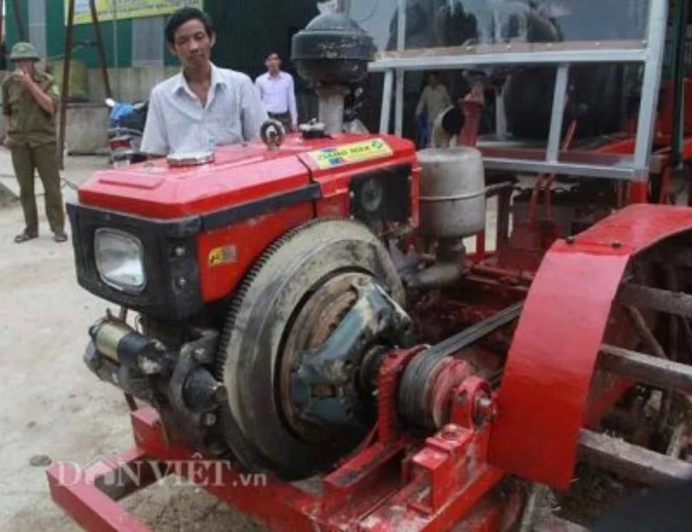 Máy cày bừa được chế tạo chạy bằng động cơ Diesel với 28 mã lực, hộp số được chế từ máy gặt liên hợp, sắt phế liệu được hàn nối thành khung sườn, ca bin được lắp ghế ngồi, có bộ phận tăng tốc, giảm tốc...Máy của tôi rất tiết kiệm nhiên liệu, 1 sào khoảng 0,8 đến 0,9/lít dầu....