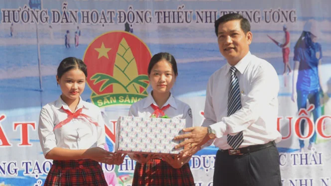 Cũng tại lễ phát động, ban tổ chức đã tặng 300 chiếc khăn quàng đỏ cho trường THCS Phan Bội Châu (phường Cẩm An, TP Hội An). Đây là ngôi trường THCS duy nhất ở TP Hội An đóng trên địa bàn phường ven biển.