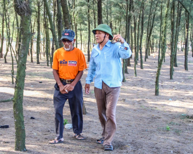 “Lúc đó cũng nghĩ đủ cách để đê biển an toàn, nhưng tiền đâu mà làm đê, chỉ có trồng cây gây rừng rồi dần dần may chi mới đỡ bị sóng cuốn. Rồi tôi nói với vợ rời làng ra dựng lều nơi cửa biển để trồng phi lao”, cụ Lán nói.