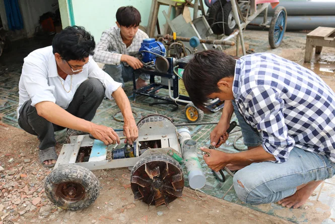 “Sau này, khi tích lũy được một ít vốn, tôi về Trà Vinh sinh sống và bắt tay vào nghiên cứu chế tạo robot. Sau 1 năm mày mò nghiên cứu, tôi đã làm được máy hút đa năng và robot dùng để thông cống nhằm giúp các công nhân không phải trực tiếp làm công việc nặng nhọc, nguy hiểm này”, anh Nam nói.