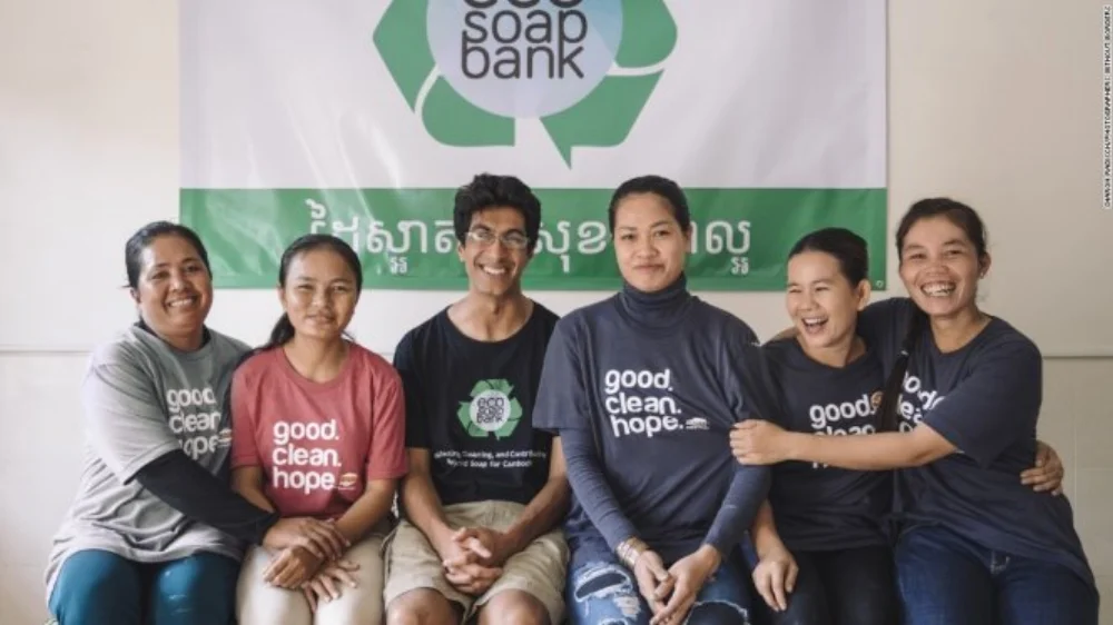 Vậy là Lakhani khởi xướng thành lập tổ chức phi lợi nhuận mang tên Eco-Soap Bank. Tổ chức này chuyên tái chế các miếng xà bông bị bỏ đi tại các khách sạn Campuchia, sau đó phân phối lại cho những người cần dùng.