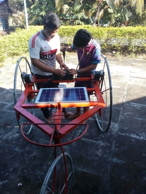 Thầy trò trường làng chế xe canh tác lúa đa năng sử dụng năng lượng xanh