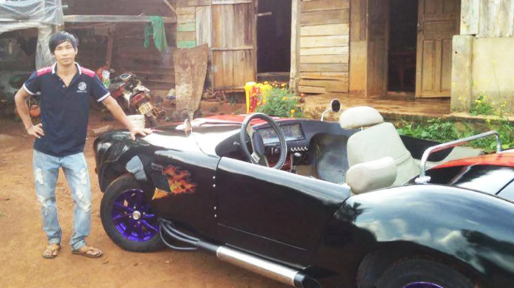 Những ngày qua, dân mê xe từ khắp nơi đổ về ngôi nhà nằm sâu trong thôn nhỏ ở huyện Đắk Mil (tỉnh Đắk Nông) để được tận mắt nhìn thấy chiếc Shelby Cobra 427 - dòng xe thể thao biểu tượng của nước Mỹ có giá gốc hàng triệu USD được anh Trần Văn Kim (sinh năm 1989) chế.