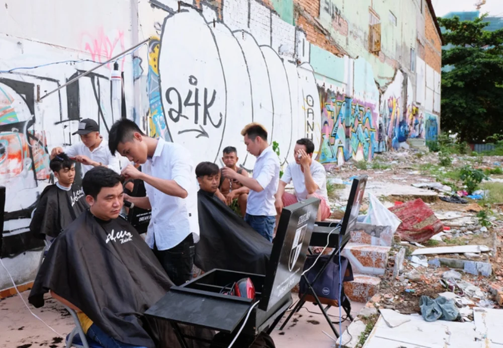 Tiệm tóc 0 đồng ở bãi đất hoang