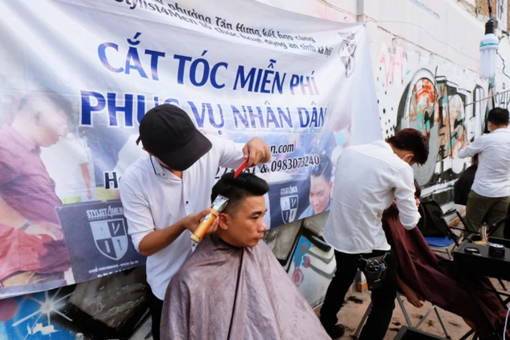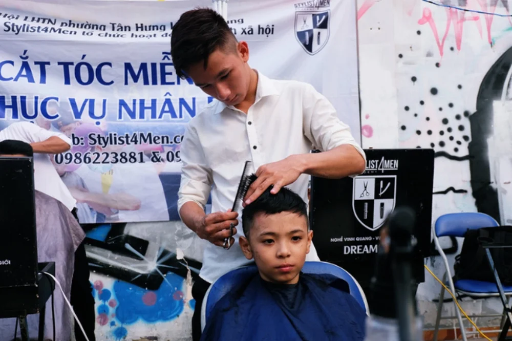 Vài tháng gần đây, người dân ở khu vực đường Trần Xuân Soạn (quận 7) vẫn truyền tai nhau về một tiệm tóc kỳ lạ ở bãi đất hoang mé sông. Mỗi ngày, các chàng thợ cắt tóc đón khách từ 3h chiều và phục vụ đến 7h tối thì kết thúc. Chi phí cho một mái đầu: 0 đồng!