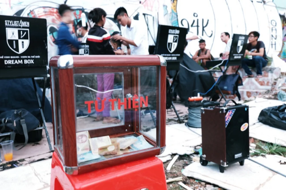 Tiệm không thu phí của khách nhưng vẫn đặt sẵn một thùng từ thiện để vị khách nào có nhã ý có thể ủng hộ một ít tấm lòng. Toàn bộ số tiền thu được từ hộp từ thiện sẽ dùng để làm quỹ cho nhóm thực hiện các chuyến đi cắt tóc từ thiện ở tỉnh xa.