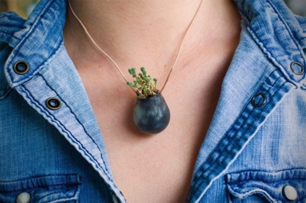 Ông dùng máy in 3-D tạo ra những bình hoa nhỏ xíu, và cắm đầy những bông hoa nhỏ mọc cứ như hoa thật. Bạn có thể đeo như dây chuyền hoặc ruy băng hay đặt trên bàn làm việc.