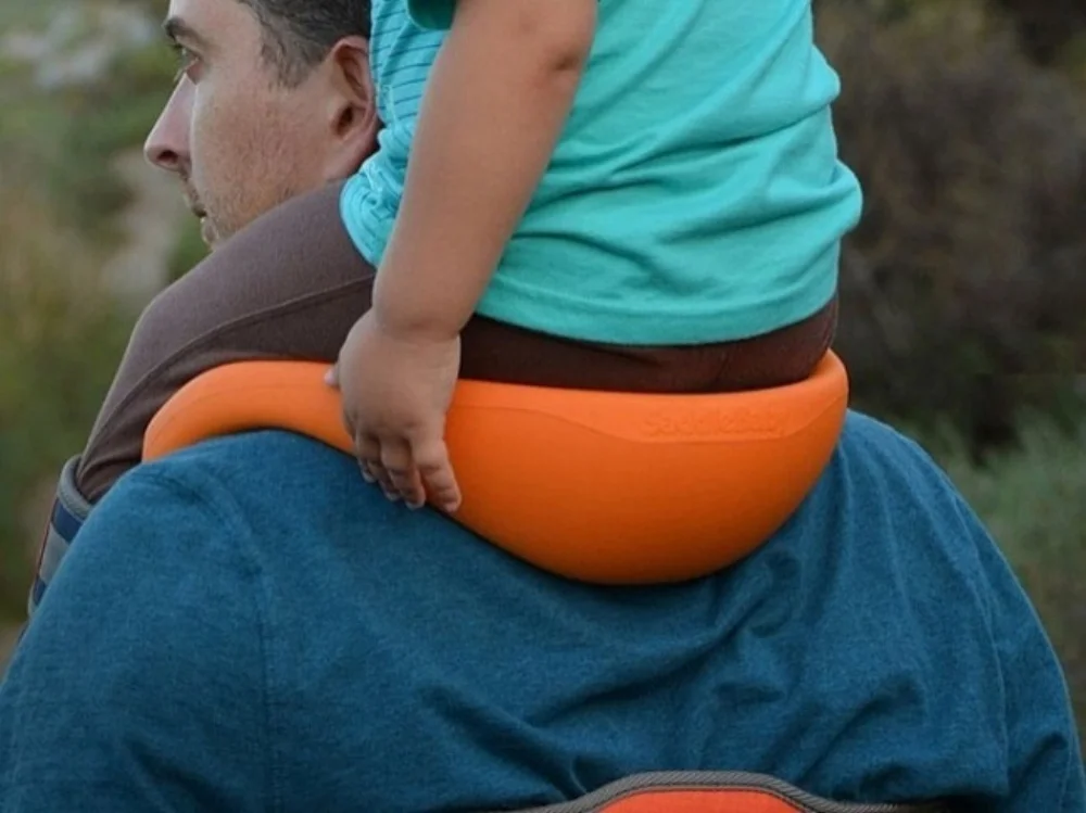 Chiếc yên SaddleBaby là cách mới hay ho để địu các bé thích ngồi trên vai bố. Bố bây giờ có thể rãnh tay bấm điện thoại hoặc chụp ảnh – thế là cả nhà đều vui!