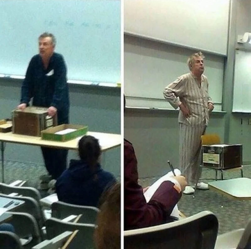 6. Khi trường đổi tiết đầu từ 9h sang 7h sáng, thầy đã tìm cách phản đối bằng cách mặc pijama lên lớp