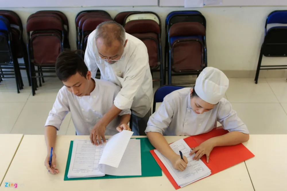 Các em được thực hành nấu ăn, phục vụ ngay tại nhà hàng thực tập của trường và khi đủ vững nghề, thầy Hội sẽ viết thư gửi học trò đến các nhà hàng, khách sạn, khu nghỉ mát, tiệm bánh hoặc các công ty trong ngành công nghiệp thực phẩm để tìm cơ hội cho riêng mình.