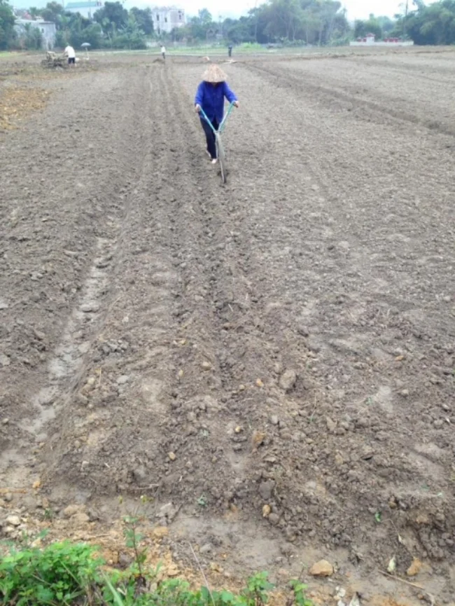 Nhược điểm duy nhất của dụng cụ làm nông bằng chiếc khung xe đạp Thống nhất này, theo lời cô Danh chính là chỉ phù hợp để tạo hàng lối khi trồng lạc, còn trồng lúa thì không áp dụng được.