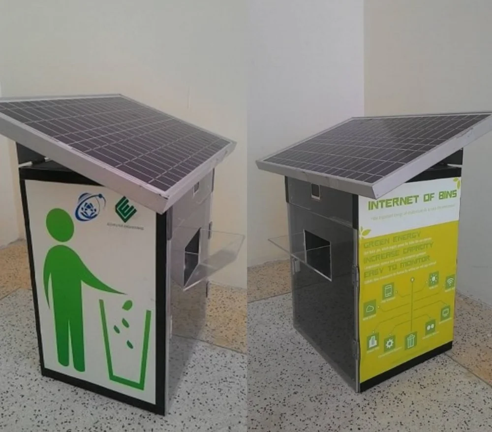 Hướng tới việc xây dựng thành phố thông minh, hai chàng trai Nguyễn Phúc Thịnh và Đỗ Quang Huỳnh đến từ Trường Đại học Công nghệ thông tin – Đại học Quốc gia TP.HCM đã chế tạo ra hệ thống thùng rác tiên tiến sử dụng năng lượng mặt trời.