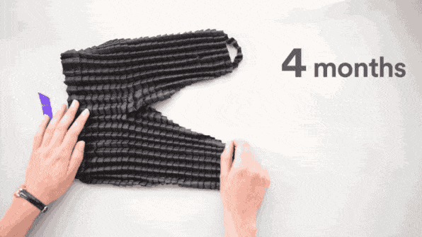 Anh bắt đầu thử nghiệm và nhận ra rằng khi khâu vải tổng hợp theo một cách nhất định, vải có thể co dãn theo cả hai chiều.
