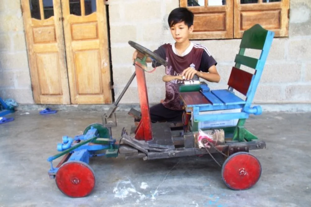 Trò lớp 8 (Huế) làm xe điện cho người khuyết tật