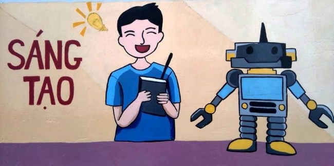 Bức tường được hoàn thành với nhiều màu sắc sống động của cuộc sống, nhắc nhở mỗi người về ý thức, trách nhiệm của mình đối với gia đình và xã hội.