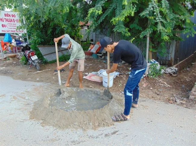 Bình quân mỗi đợt khoảng 5 - 6 tháng hoặc khi thấy xuất hiện nhiều điểm bị hư hỏng là các thành viên lại tiến hành tổ chức dặm vá.