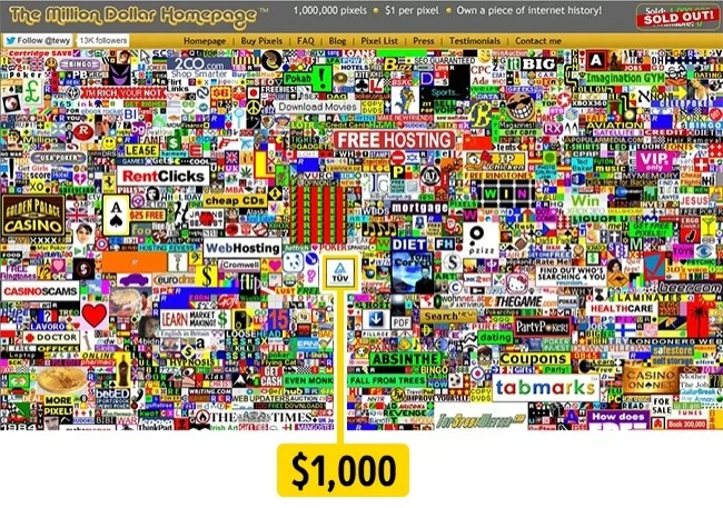 Năm 2005, một giáo viên người Anh tên Alex Tew quyết định kiếm thêm tiền trang trải việc học. Ông tạo một website mà 1 pixel ở đó có giá 1 USD.