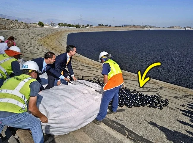 Một quyết định lạ lùng đã được đưa ra khi người ta đổ đầy bể bằng các quả bóng nhựa. Bóng giúp ngăn chặn sự hình thành tảo và ngăn truyền nhiệt tới nước, qua đó giúp bể sạch trở lại.