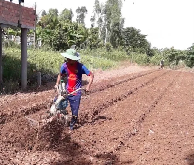 Máy anh Cường làm đất đẹp, đẹp hơn vít bằng len và rất lâu. Một ngày mình vít khoảng 4 người cho 4 hàng xuôi, máy anh Cường chỉ làm một buổi, đỡ tốn chi phí và công lao động”.