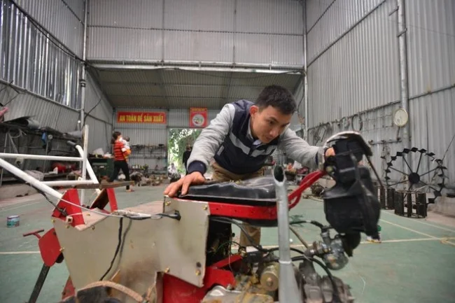 Hiện nay, anh Huy đã có 2 cơ sở sản xuất máy nông nghiệp với khoảng 20 nhân công (thời điểm đông nhất) làm việc 8 tiếng/ngày. Trong năm vừa qua, trừ các khoản chi phí, anh Huy thu về 700-800 triệu đồng.