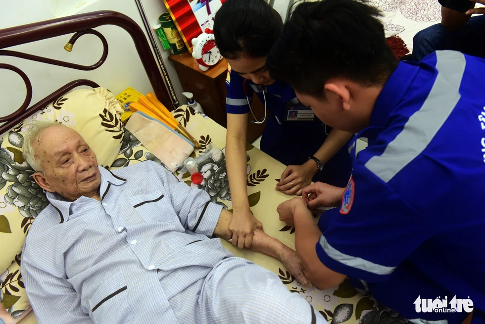 Cụ ông Nguyễn Tám (92 tuổi, Q.1, TP.HCM) được các bác sĩ cấp cứu tại nhà - Ảnh: Duyên Phan.