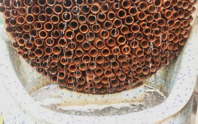 Công ty thiết kế Ant Studio ở Ấn Độ vừa làm được một chiếc máy làm mát không khí bằng ống đất nung không những chạy không cần điện mà còn trông như một tác phẩm nghệ thuật