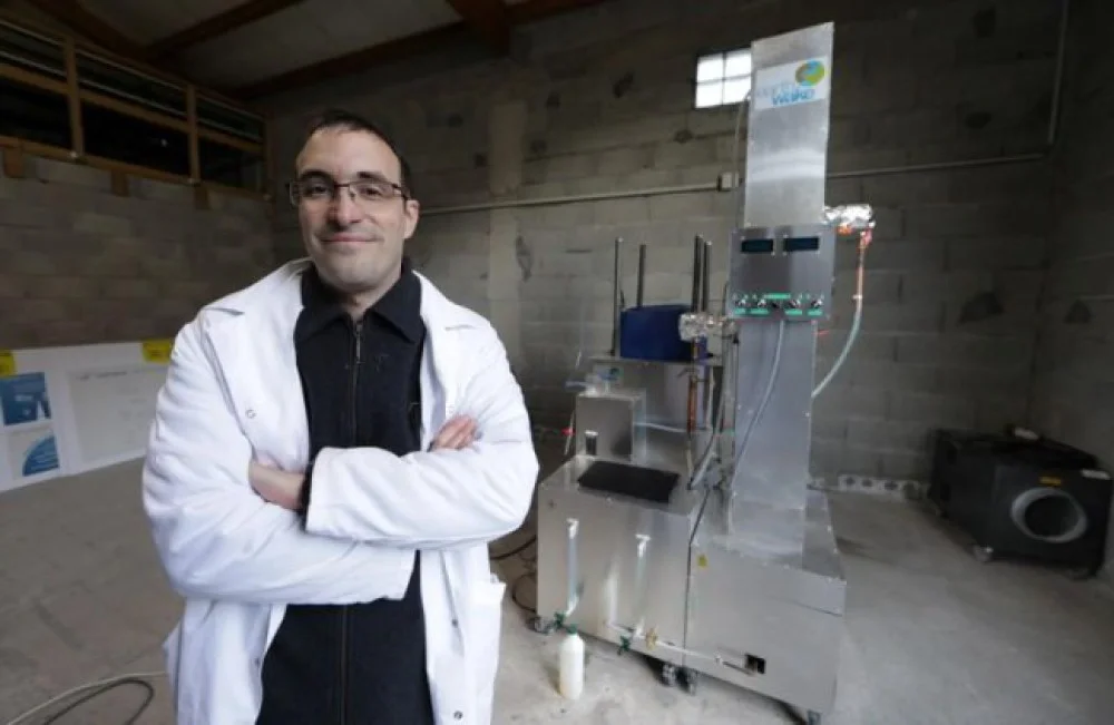 Diễn viên Christofer Costes, 36 tuổi, người Pháp đã thiết kế ra một cỗ máy biến chất thải nhựa thành dầu diesel và xăng.
