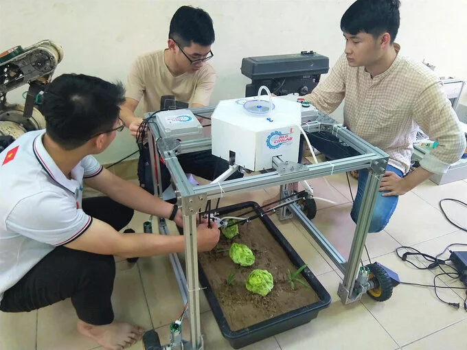 Sử dụng công nghệ học sâu, nhóm sinh viên Bách khoa Hà Nội chế tạo robot diệt cỏ có khả năng tự hành và chọn gốc cỏ để xịt thuốc.