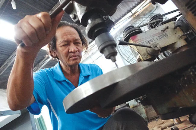 Giữa không gian đượm mùi khói hàn và tiếng khoan đục không ngớt của máy tiện, máy cắt sắt thép, ông Trị bắt đầu câu chuyện của mình bằng một câu đúc kết đoạn đường đã qua bằng cái giọng rặt chất Nam bộ: