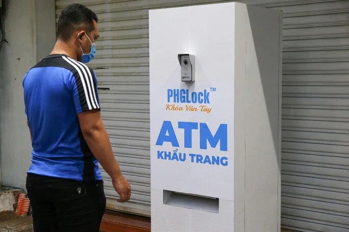 Khi đến nhận khẩu trang miễn phí, người nhận sẽ không cần phải bấm bất kì nút nào trên thân máy mà "ATM khẩu trang" sẽ nhận diện gương mặt thông qua hệ thống camera được lắp trên thân máy.