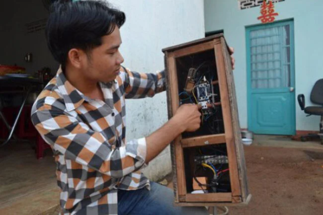 Để đỡ vất vả, anh nông dân 27 tuổi mới học hết lớp 6 ở Đắc Nông đã làm được một việc mà hẳn nhiều nhà khoa học, những người có bằng cấp phải thán phục: Dùng một chiếc điện thoại cơ bản để đóng-mở nguồn điện ở cự ly không giới hạn, miễn có sóng là có thể hoạt động.