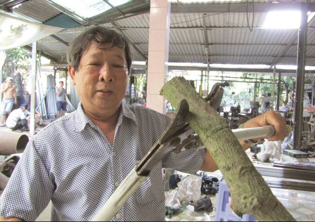 “Tôi học hành có tới nơi, tới chốn gì đâu, nhưng mỗi khi thấy nhà vườn vất vả khi leo lên cao tỉa nhánh, bẻ trái cây, bọc trái không để sâu rầy cắn phá nên mới nghĩ ra việc sáng chế nhiều dụng cụ giúp bà con đỡ vất vã thế thôi. Dần dà cái máu “sáng chế” cứ thôi thúc tôi sáng tạo ra nhiều loại dụng cụ phục vụ sản xuất cho tới bây giờ”, ông Lộc tâm sự.