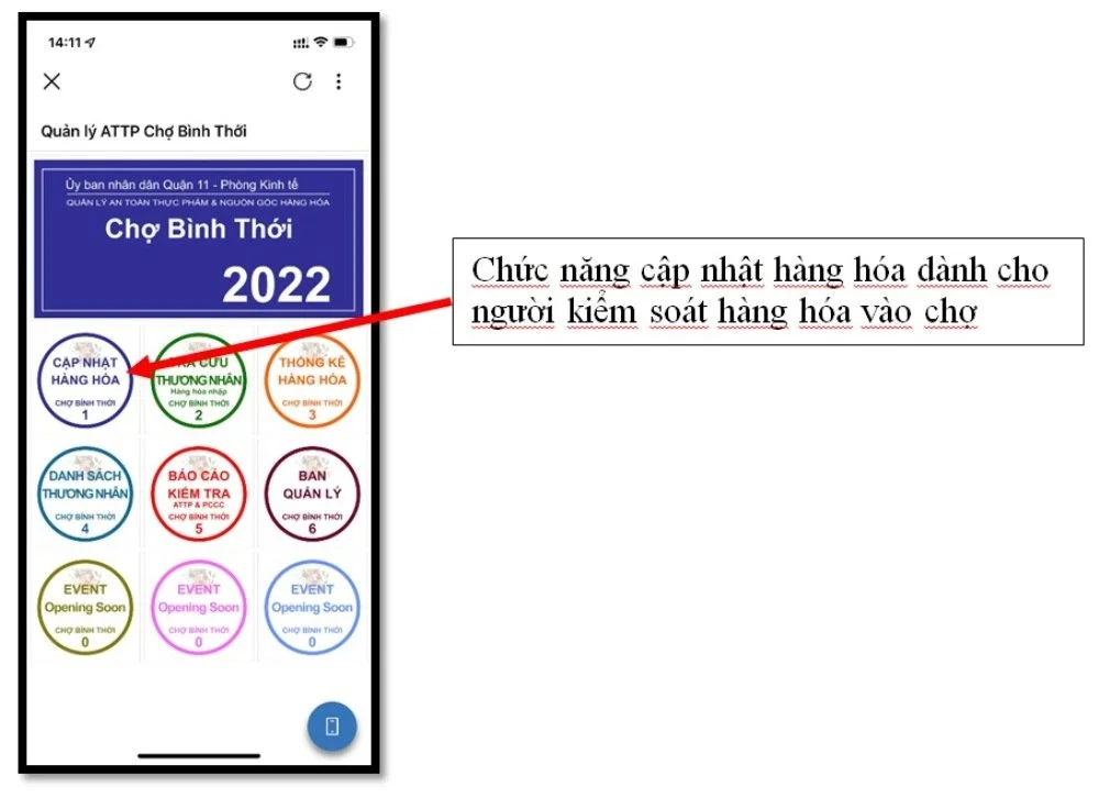Tổ chức vận hành thử nghiệm giải pháp ứng dụng công nghệ thông tin trong quản lý an toàn thực phẩm và nguồn gốc hàng hóa nhập vào tại Chợ Bình Thới bắt đầu từ ngày 26 tháng 9 năm 2022 đến hết ngày 31 tháng 12 năm 2022 và được sử dụng chính thức đến nay