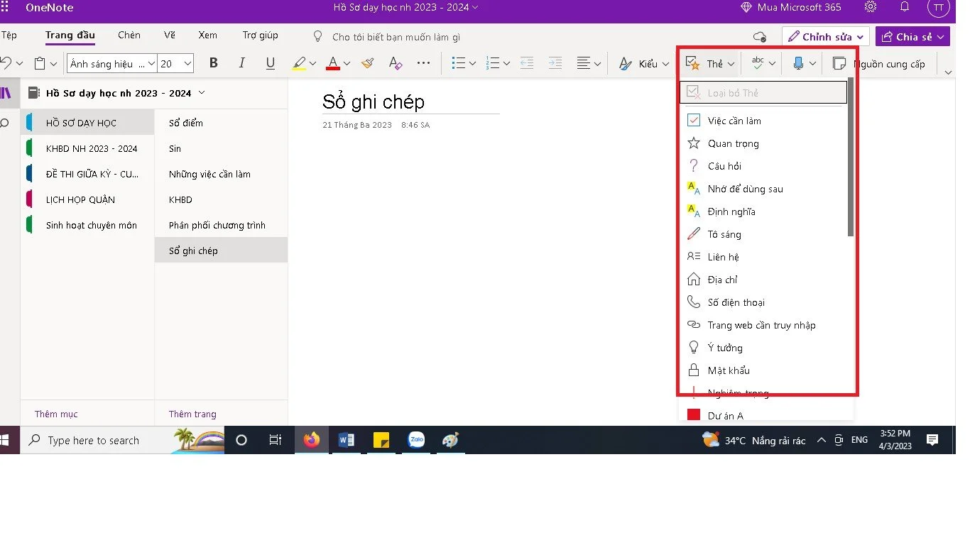 Sử dụng One Note để quản lý hồ sơ dạy học, Tiểu học , Trung Học Cơ Sở, Phổ Thông Trung học