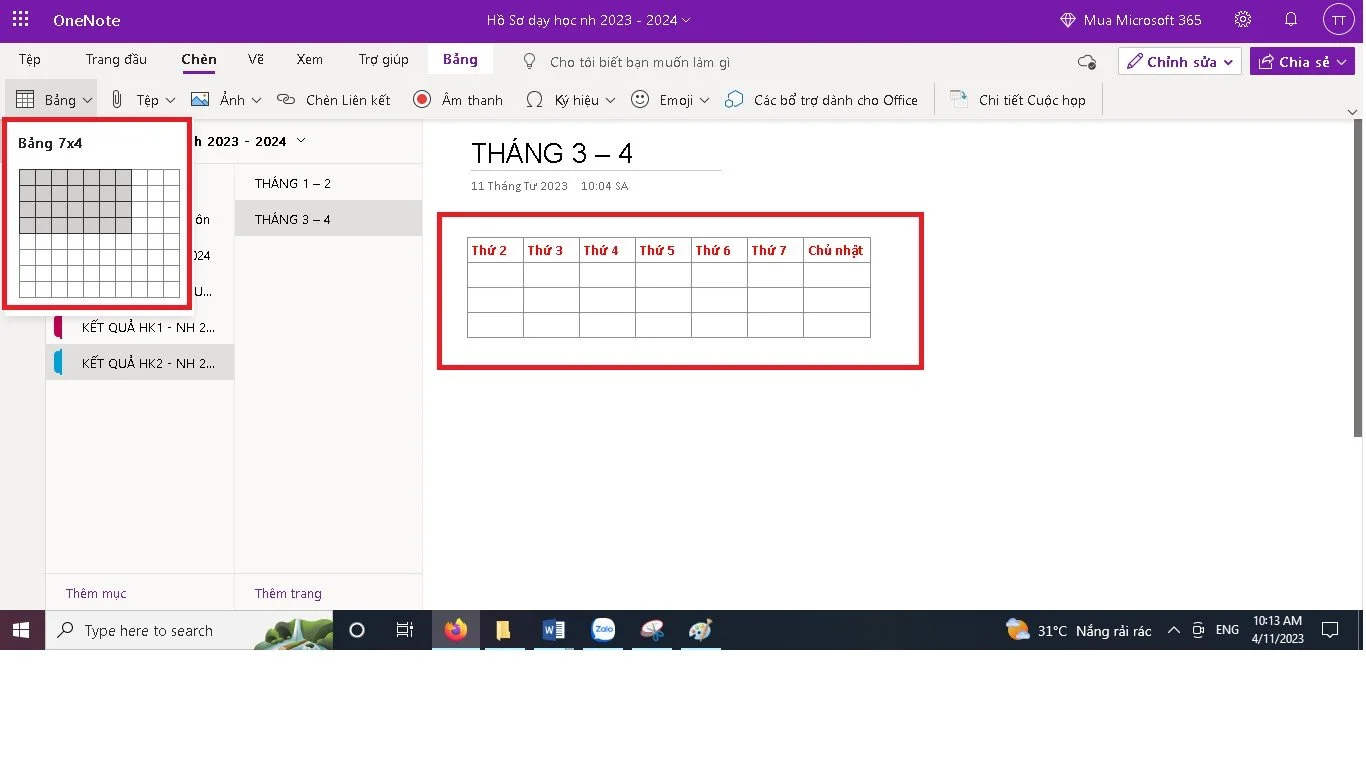 Tạo các trang theo tuần: Bạn có thể tạo các trang theo tuần trong mỗi cuốn sổ ghi chú để tổ chức bài giảng, hoạt động lớp học và bài kiểm tra cho mỗi tuần. Bạn có thể sử dụng các chủ đề và cấu trúc khác nhau cho các trang này, tùy thuộc vào nhu cầu của bạn.