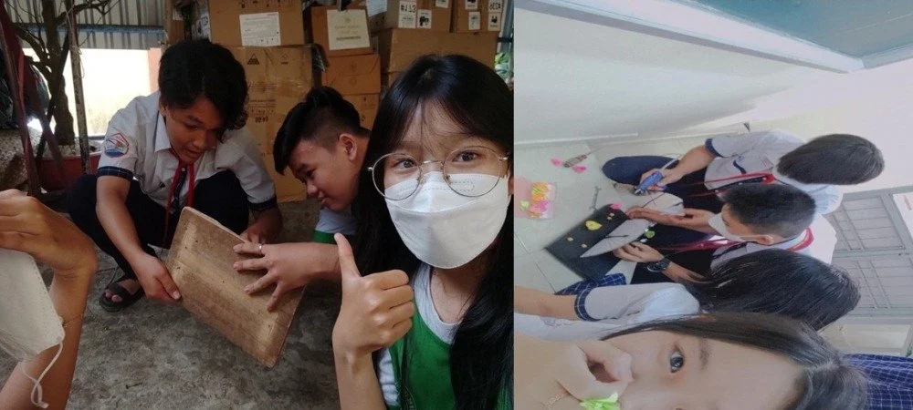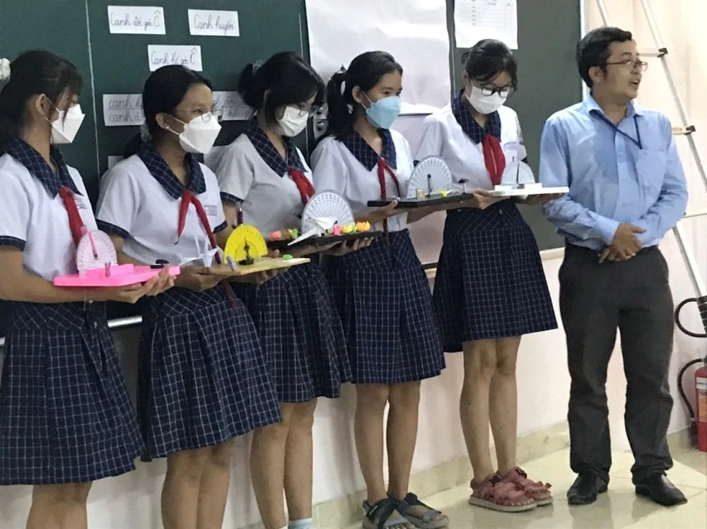 Ví dụ 4: Khi phòng thiết bị thiếu các dụng cụ trực quan phục việc hình thành kiến thức, giáo viên sẽ hướng dẫn cho các em học sinh cùng nhau làm ra các sản phẩm học tập phục vụ bài học của mình. Từ đó tạo ra thêm nhiều thiết bị phục vụ học tập.