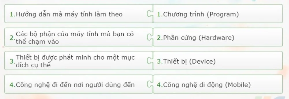 Di chuyển từng định nghĩa từ danh sách bên trái sang thuật ngữ mà nó xác định ở bên phải.