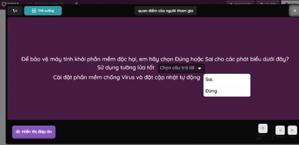 Học sinh hoàn thành bài làm, kết quả sẽ gửi về cho giáo viên, thầy cô hoàn toàn có thể kiểm tra, phân tích kết quả bài làm của học sinh.