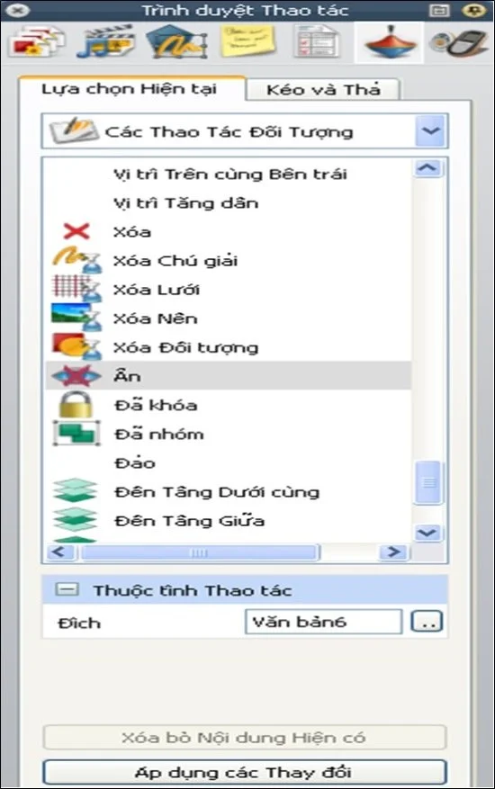 Các thao tác đối tượng giúp ta gán các hiệu ứng tương tác cho đối tượng.