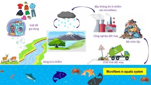 Ô nhiễm vi nhựa: Giặt quần áo làm từ vải tổng hợp, chẳng hạn như polyester, các sợi nhựa nhỏ gọi là vi nhựa sẽ được thải vào nước. Những hạt vi nhựa này tìm đường vào sông, hồ và đại dương, gây ra mối đe dọa nghiêm trọng cho sinh vật biển. Chúng thậm chí có thể lọt vào chuỗi thức ăn, có khả năng gây hại cho cả động vật và con người.